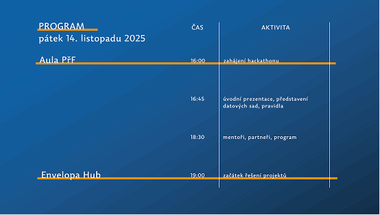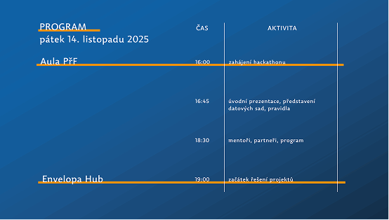 Účastníci budou nejprve seznámeni s pravidly, otevřenými daty a nabízenými tématy. Následně začnou pracovat na tvorbě vlastních nápadů pod vedením zkušených mentorů. Ti budou týmům k dispozici v rámci celé akce. Pro účastníky jsou připraveny zajímavé tematické expertní workshopy, které jim pomohou v rámci různých aspektů řešení jejich projektů. Během 48 hodin vytvoří týmy vlastní projekt, který odprezentují odborné porotě.